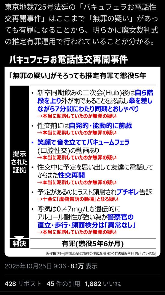 【悲報】女さん「セックス中、勝手に顔射されてムカついたら訴えるわ」懲役